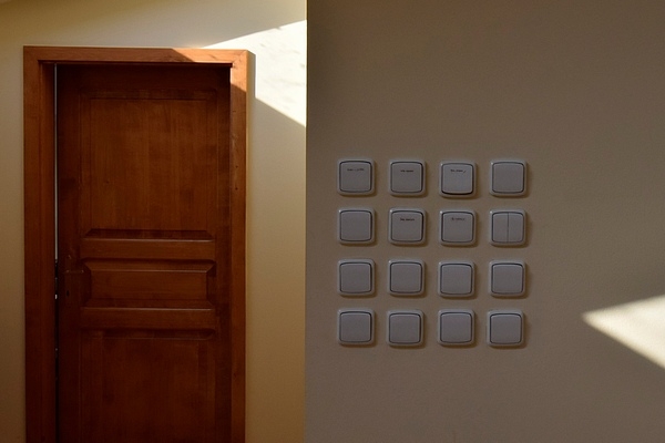 Záver roka by mal byť veselý. Nasledujúca fotka vznikla síce na jeseň, kedy sme posudzovali niekoľko kancelárskych priestorov v centre Prahy, ale odložili sme ju práve pre dnešný deň. Ťažko stanoviť diagnózu projektanta alebo samotného elektrikára, ktorý tieto vypínače inštaloval. Ale možno má takéto zapojenie nejakú hlbokú myšlienku, najmä pozícia D2 (posledný v druhom rade) je prekvapivá a mohla by zmiatnuť aj nejedného skúseného šachistu.