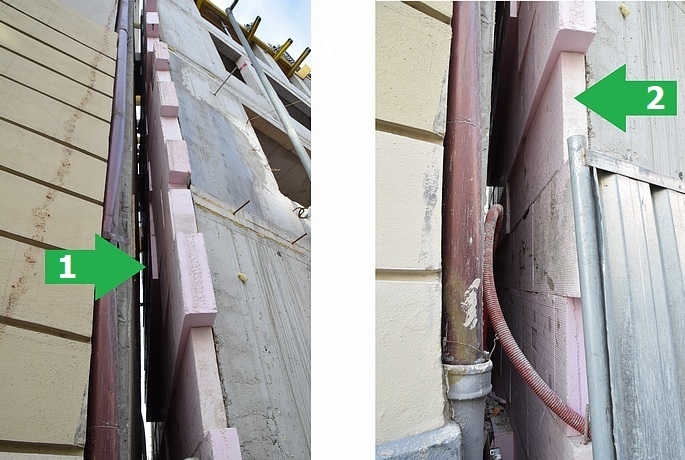 Je jasné, že izolačné platne sa už nebudú dať nijako opraviť, ani nebude možné na ne aplikovať nejakú vhodnú ochrannú vrstvu, nakoľko do medzery sa robotník nezmestí. Predpokladáme, že na konci sa celá medzera od ulice prekryje, aby budúci obyvatelia neboli zbytočne nervózni.