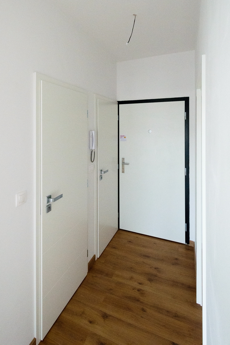 Aj laikovi na tejto fotke niečo nebude sedieť. Prvé dvere sprava vedú do kúpeľne, potom do WC a oproti sú hlavné vstupné dvere do bytu. Teraz vstupné dvere do bytu zatvoríme a dvere do WC otvoríme. Nastane toto: