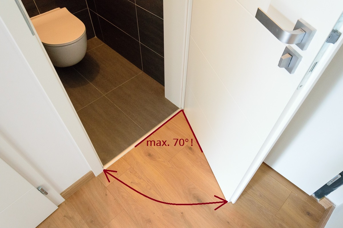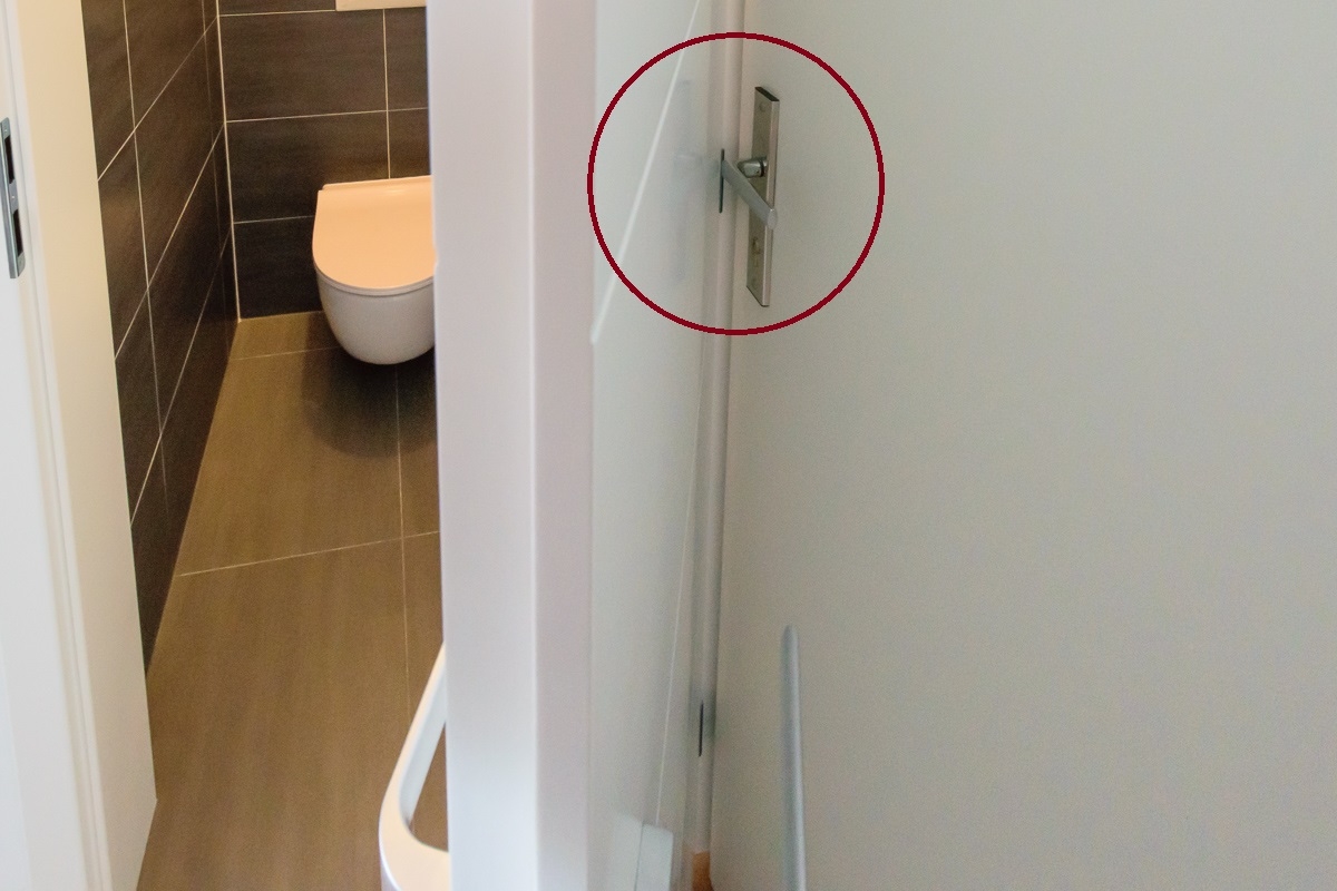 Dvere do WC plnohodnotne neotvoríme. Bráni tomu odolná kovová kľučka na hlavných dverách, ktorá bude obíjať dverné krídlo a časom ho aj spoľahlivo prerazí. Dvere do WC sa dajú otvoriť iba čiastočne, toto je maximum.