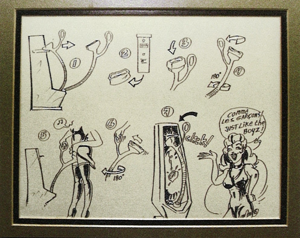 Tu je návod na používanie. Posuniete držadlo nadol a natočíte si ho k sebe. Vyberiete si papierový obal z dávkovača a umiestnite ho na špeciálnu koncovku. Uchopíte držadlo, nájdete správnu polohu a... Po skončení otočíte rukoväť naspať a pustíte. Papierový obal zahodíte, držadlo sa vráti do pôvodnej polohy a pisoár sa automaticky spláchne. Jednoduché, a hygienické zároveň.